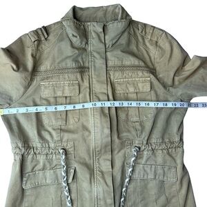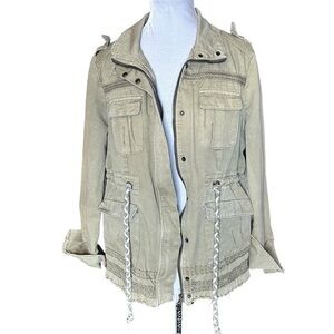 BKE Utility Jacket Women’s Distressed Snap Zip Pockets Lace. Size Large