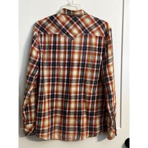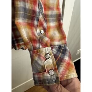 BKE Vintage 1967 Button Up Plaid Size L Athletic Fit Red Blue Snap Western Rodeo