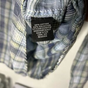 Stylish plaid design. Features button-down front. Two chest pockets with button closure. Perfect for casual wear. Excellent gently used condition. Non smoking home.