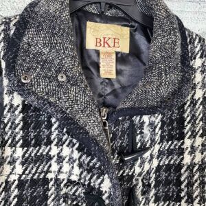 BKE Women’s Black White Plaid Toggle Vest Wool Blend Size L Sleeveless Winter La