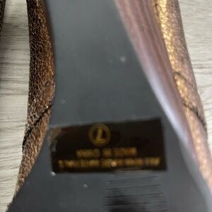 Elegant bronze peep-toe heels by BKE. Stylish and versatile for any occasion.