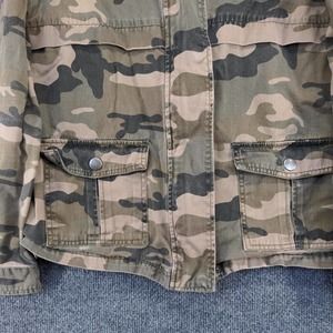 BKE Women's Jacket Multi Medium Camo Button Front Long Sleeve Pockets Cotton