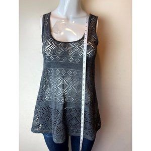 BKE Womens Open Weave Tank Top Scoop Neck Sleeveless BK103 Black Size Small