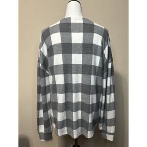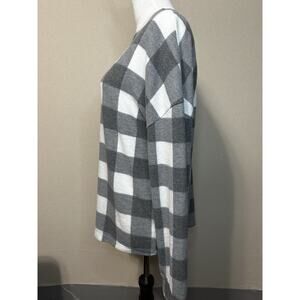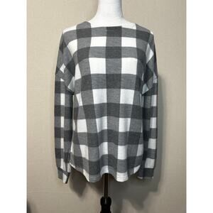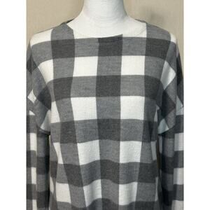 BKE Women’s Pullover Sweater Medium Gray And White Checkered Long Sleeve Soft