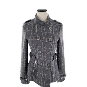 BKE Women's Silver Gray Double Breasted Sparkle Sequin Military Style Jacket S