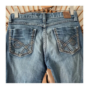 BKE Y2K Denim Distressed Mya Low Rise Boot Cut Jeans Sz 26