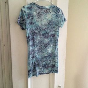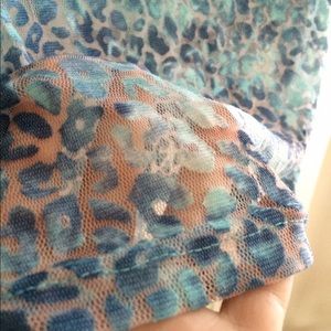 Sheer, blue leopard print top. Light weight, great for summer. 27.5 in from shoulder to hem, GUC, size medium.