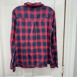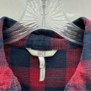 BKE eased long-sleeve button down plaid flannel shirt women's small knit pocket