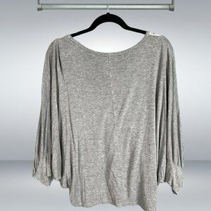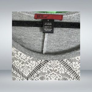 BKE heathered grey batwing tunic top with mesh lace front without lining.