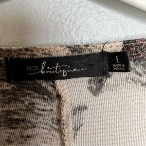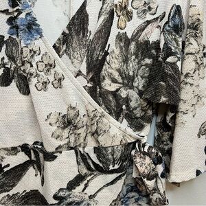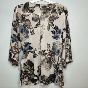 BKE metallic wrap floral kimono style Top short sleeve Sz L Boho Flowy Romantic