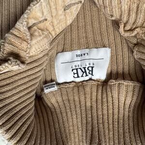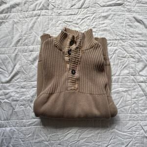 BKE ribbed mock neck sweater sz L quarter button preppy fisherman academia