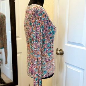 BKE crochet sweater. Like new. Turquoise, purple, orange, &white. Size small. NO RIPS, STAINS, OR HOLES. ***Tank Not Included ***