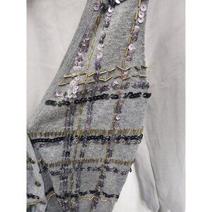 BKE the Buckle Womens Cardigan Small Gray Sheer Contrast Knit Sequin Embellished
