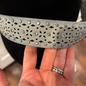BKE women’s Silver Studded Rhinestone And Rivets Western Boho Waist Belt 39.5”
