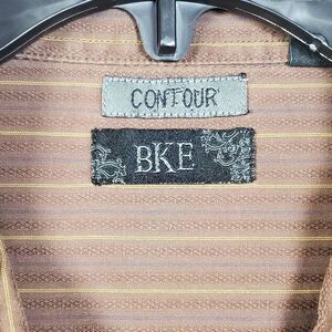 BKE Contour Men’s Long Sleeve Striped Button-Up Shirt Brown Medium Casual Dress