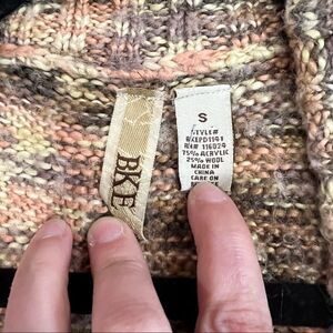 BKE Cream Brown Pink Boho Sweater Vest