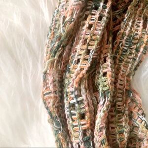 Pretty variegated infinity scarf. Colors of fall, greens, oranges and pink. 100% acrylic. In excellent used condition. BKE. Size OS