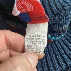 BKI Knits VINTAGE Sweater Mens Medium Blue Red Patterned Eclectic Grandpa USA