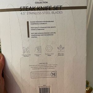 Wood grain appearance. Stainless steel blades. Quality knives! Steak knife set of 4. New.