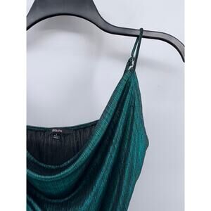 BLA SHE Women's Dark Green Metallic Cowl-Neck Spaghetti Strap Bodysuit SZ L