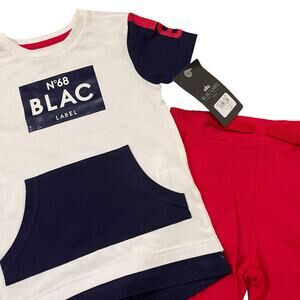 BLAC LABEL Graphic T-Shirt & Shorts Set Red White Navy Blue NWT Boys 4T