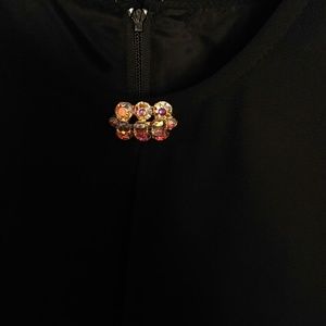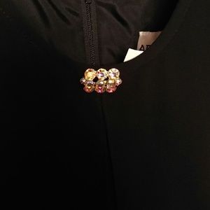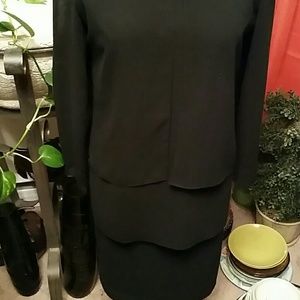 Elegant Black three layer dress, beautiful rhinestone in the center of dress fully lined 100% polyester you will be the talk of the party?? just put on some Sexy fishnet Bold Color shoe w/a pair of large rhinestone earrings ?only worn a couple of times