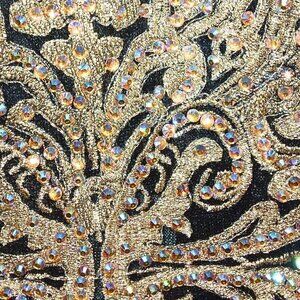Sophisticated Lady! This black and gold crystal embellished black and gold party dress is a must have for your after 5 wardrobe collection. Side Zipper