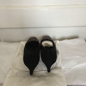 Prada (Milano) pumps in black suede, the tip of the shoe (some 2.5") is in grey suede.