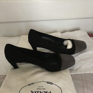 BLACK AND GREY SUEDE PRADA PUMPS PREVIOUSLY LOVED