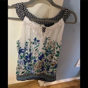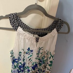CUTE SUMMER TOP FLORAL, SILKY MATERIAL, SLEEVELESS, BUTTON IN BACK, CINCHED WAIST