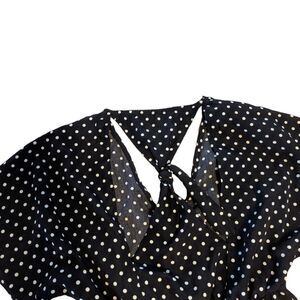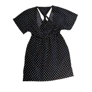 🛍️ BLACK AND WHITE POLKA DOT OPEN BACK FRONT ZIP UP DRESS Vintage Vibes!