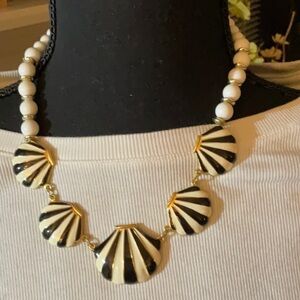 BLACK AND WHITE SHELL SHAPED NECKLACE
