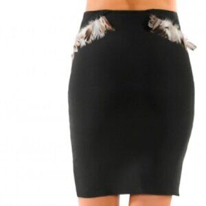 BLACK BODYCON SKIRT WITH FEATHERS AND ZIPPER DETAIL