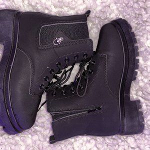 These black boots are the perfect addition to anyone's collection. With their sleek design and synthetic upper material, they're sure to be a hit. Available in a size 8, these unisex boots are suitable for anyone in need of a stylish and comfortable footwear option. The booties come in a classic black color that matches any outfit. Whether you're heading to work or out for a night on the town, these boots are the way to go. Don't miss out on the opportunity to add them to your wardrobe.