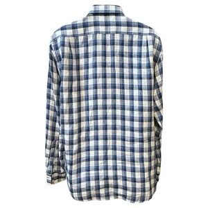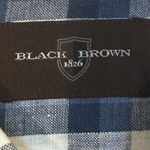 BLACK BROWN LS Button Front Gingham Check Shirt Navy Black Linen Large