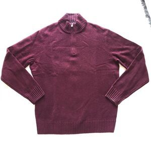 BLACK BROWN 1826 LAMBSWOOL MAROON 1/4ZIP Sweater L