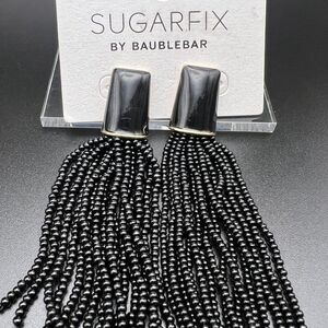 Sugarfix by BaubleBar beaded fringe earrings with black caps.