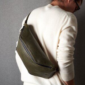 Black Leather Sling Backpack Shoulder Bag Men single strap is the perfect gift for men that love clean designs: simple and functional.