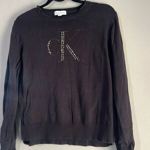 Calvin Klein Jeans Pullover Black with Sequin Text Sweater Womens Size Small