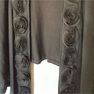 BLACK CASCADE SWEATER W/ CHIFFON FLOWERS