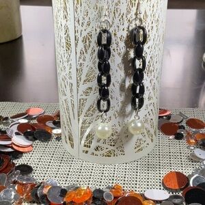 BLACK CHAIN EARRINGS WITH A PEARL AT END
