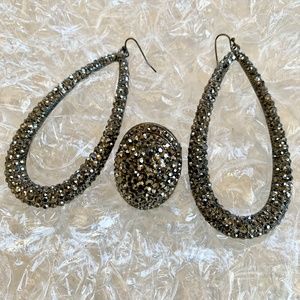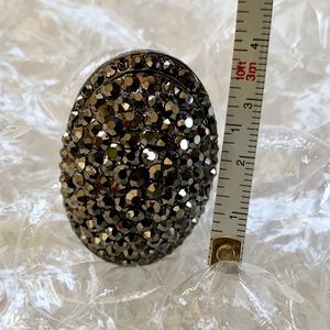 Large black crystal oval shape stretch ring. Can be matched with large hoop earrings sold separately see listing.