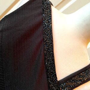 BLACK COCKTAIL DRESS SLEEVELESS WITH BEADED NECKLINE SIZE 6P NWT