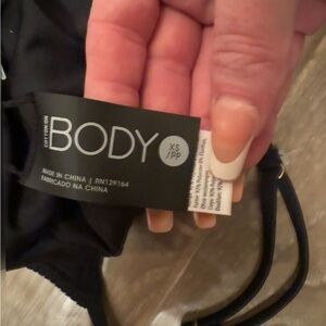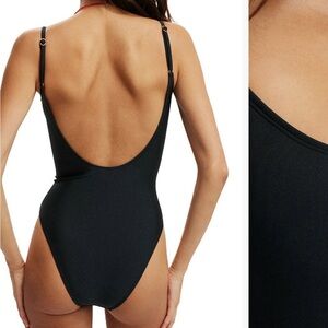 BLACK COTTON ON TEXTURED SCOOP NECK ONE PIECE SWIMSUIT CHEEKY BOTTOM XS
