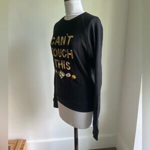 BLACK CREW NECK SWEATSHIRT CANT TOUCH THIS SNACKS SEQUIN SIZE S