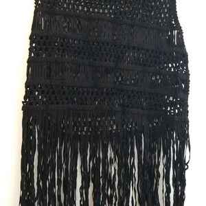 VACATION BLACK KNIT CROCHET FRINGES SHAG CRUISE COVER COVER-UP PARTY TOP TOPS BLOUSE BLOUSES MESH