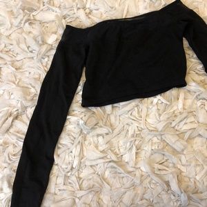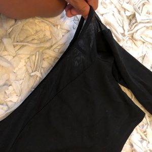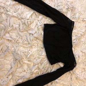 BLACK CROP TOP LONG SLEEVE MESH COLLAR