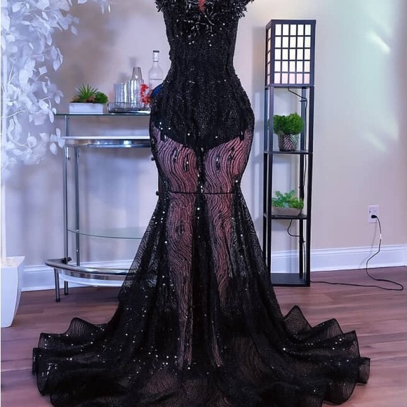Custom made black prom dress. Worn once new condition PLEASE BUY (L/XL)