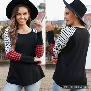 New without tags Black Crew Neck Print Splice Waffle Knitted