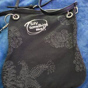 BLACK DESIGUAL CROSS BODY FABRIC PURSE